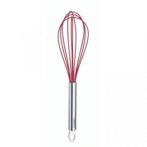 CUISIPRO Egg Whisk Stainless Steel 10", With Non-stick Red Coating, 10" L X 2.25" W X 2.25" H, Flexible silicone wires, eyelet for hanging, heat resistant up to 425 F / 220 C, brushed stainless steel tube handle, dishwasher safe