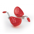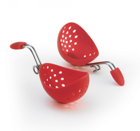 CUISIPRO 2pc Egg Poacher set Red (Hang Tag), 7" L x 2.12" W x 2.5" H, Non-stick and food-safe silicone, dishwasher safe (top shelf), heat resistant up to 425 F/220 C, hooks to secure onto pan rim