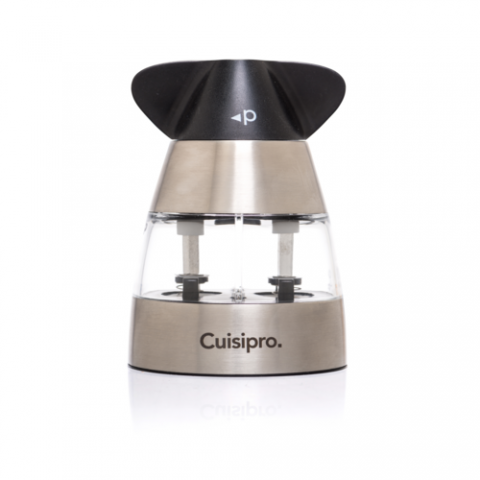 CUISIPRO Dual Mills, Black, 3.12" L X 2.5" W X 4.5" H, Ergonomic design, dual compartments, corrosion-free, clear acrylic body, easy to open and fill