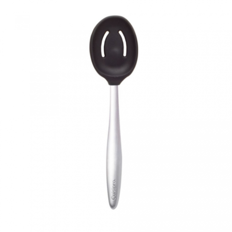 CUISIPRO PICCOLO Slotted Spoon 8"/20cm, 8" L X 2" W X 0.87" H, black LFGB standard silicone, non-slip handle, heat resistant up to 425 F/220 C, slots for easy draining, dishwasher safe, Black