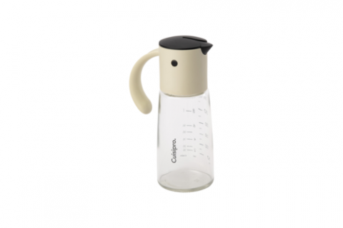 CUISIPRO Oil & Vinegar Dispenser, 300ml/10oz., 4.4" L X 2.8" W X 7.5” H, Automatic gravity lid-spout, non-porous glazed glass, stainless steel spout, handwash only, can be used for oil, vinegar, soy sauce, non-viscous salad dressings and sauces, White
