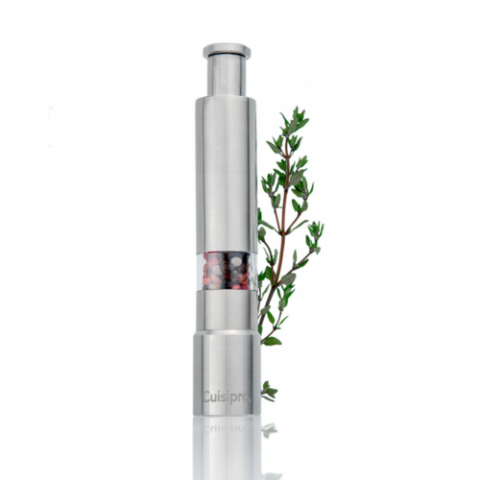 CUISIPRO Pepper Pump, 5.9" / 15 cm, 1" L X 1" W X 6" H, Stainless steel mill and grinding mechanism, one-handed operation, compact size, easy to use and refill, wipe to clean
