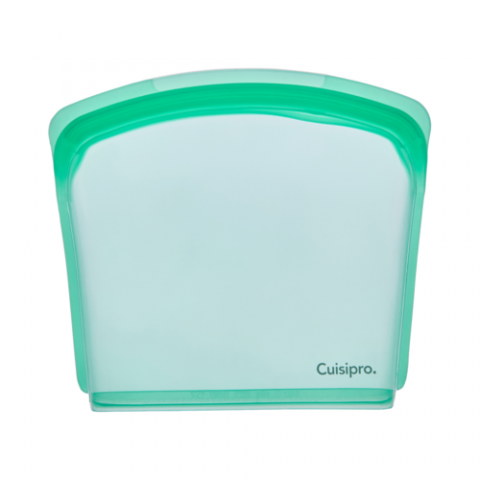 CUISIPRO Reusable Bags, 20.3x18cm/8x7", 800ml/27oz., 100% platinum silicone, hypoallergenic, BPA/BPS free, complies with FDA food grade standards, heat resistant up to 420 F/ 220 C, sous-vide capable, leakproof, lightweight, portable, 100% plastic-free, single injected mold piece design, dishwasher safe, Green
