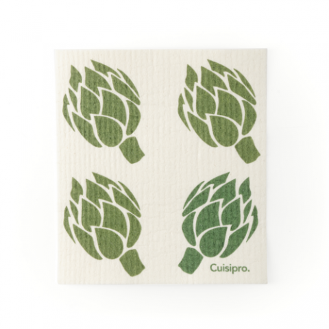 CUISIPRO All Purpose Eco-Cloth, Small, 20x17x0.2cm/7.87x6.7", 100% biodegradeable, plant-based ink, hand-wash, dishwasher and washing machine safe, reusable, Artichoke