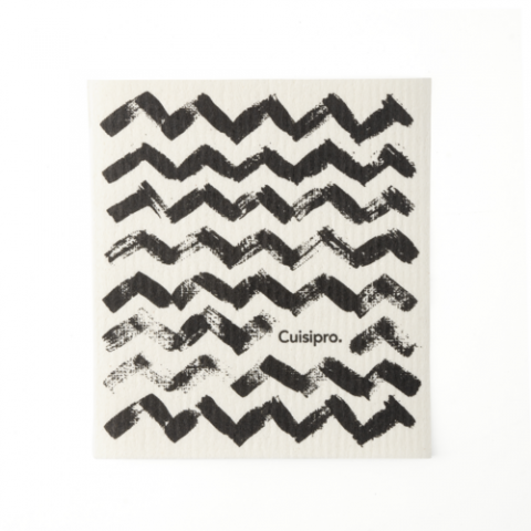 CUISIPRO All Purpose Eco-Cloth, Small, 20x17x0.2cm/7.87x6.7", 100% biodegradeable, plant-based ink, hand-wash, dishwasher and washing machine safe, reusable, Black ZigZag