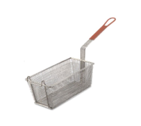 Fry Basket, 13" x 5-1/2" x 5-1/2"", rectangular, red handle, single wire construction, nickel-plated