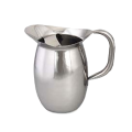 Pitcher, 68 oz., 8"H, bell shaped, with guard, tubular handle, stainless steel, mirror finish