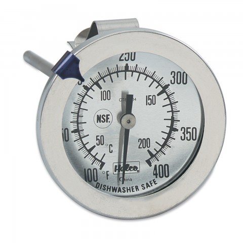 Candy/Jelly/Deep Fry Thermometer, 2-1/4" dial, 6-1/4"L, temperature range 100° to 400° F (35° to 205° C), accuracy +/-1° F, dual face, heat-resistant handle, adjustable pan clip, dishwasher safe, NSF