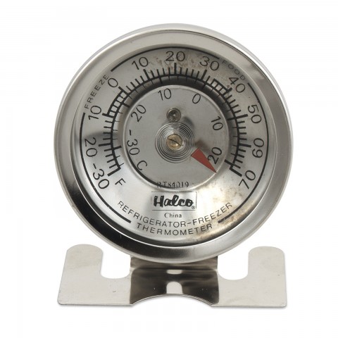 Refrigerator/Freezer Thermometer, 2-3/8" dial, 2-3/8"H, temperature range -30° to 70° F (-35° to 20° C), accuracy of +/-2° F, dual face, stands, dishwasher safe