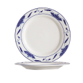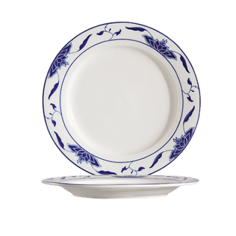 Blue Lotus Plate, 10-1/4" dia. x 1-1/8"H, round, rolled edge, dishwasher, oven and microwave safe, porcelain, Blue/Bone White (Sold by case)