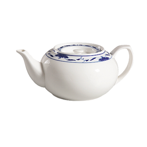 Blue Lotus Teapot, 32 oz., 8"L x 3-1/2"W x 5"H, with lid, dishwasher, oven and microwave safe, porcelain, Blue/Bone White (Sold by case)