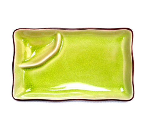 Japanese Style Plate, 8"L x 4"W x 1-1/4"H, rectangular, with sauce compartment, dishwasher, oven and microwave safe, stoneware (ceramic), reactive glaze, Golden Green (Sold by case)