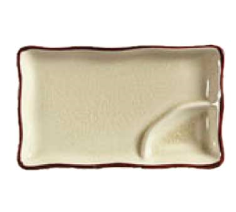Japanese Style Plate, 8"L x 4"W x 1-1/4"H, rectangular, with sauce compartment, dishwasher, oven and microwave safe, stoneware (ceramic), reactive glaze, Creamy White (Sold by case)