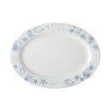 Atlantic Seashell Platter, 18"L x 12-1/2"W x 1-3/4"H, oval, dishwasher, oven, and microwave safe, porcelain, Blue decorated Rim/Super White (Sold by case)