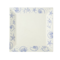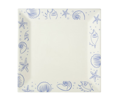 Atlantic Seashell Plate, 12"L x 12"W x 1"H, square, dishwasher, oven, and microwave safe, stoneware (ceramic), Blue decorated rim/American White (Sold by case)