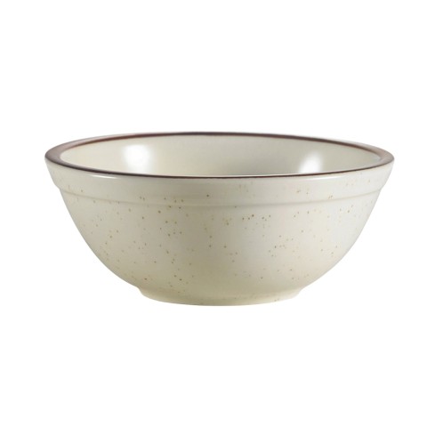 Arizona Nappie Bowl, 12-1/2 oz., 5-5/8" dia. x 2"H, round, narrow rim, dishwasher, oven and microwave safe, stoneware (ceramic), Brown Rim/Brown Speckled/American White (Sold by case)