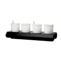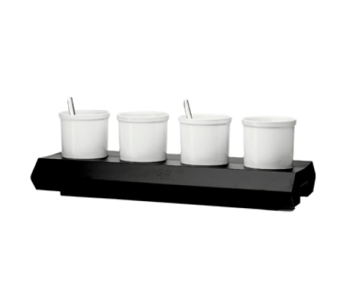 Jam/Sauce Pot Set, includes: (4) pots, 1-1/4 lt. (42 oz.), 5" dia. x 5-3/4"H, dishwasher, oven and microwave safe, (1) metal stand, 24-3/4"L x 10-1/2"W x 7-7/8"H, porcelain, BF™, Super White (Sold by case)