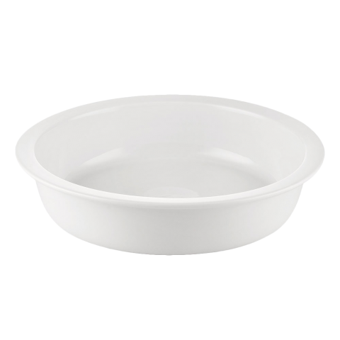 GN Food Pan, 48 oz., 10-5/8" dia. x 2-1/8"H, round, dishwasher, oven and microwave safe, porcelain, BF™, Super White (Sold by case)