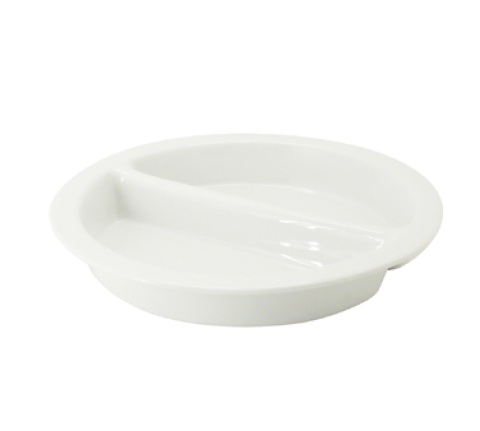 GN Divided Food Pan, 15-3/8" dia. x 2-1/2"H, round, 2-compartments, dishwasher, oven and microwave safe, porcelain, BF™, Super White (Sold by case)