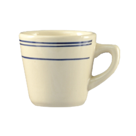 Blue Line Coffee Cup, 7 oz., 3-1/2" dia. x 3"H, round, dishwasher, oven and microwave safe, stoneware (ceramic), Blue Band/American White (Sold by case)