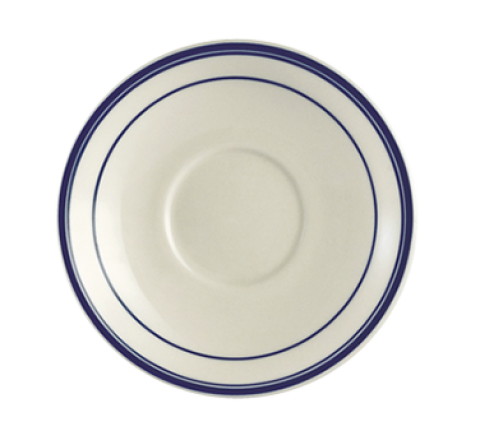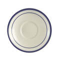 Blue Line Saucer, 6" dia. x 1"H, round, dishwasher, oven and microwave safe, stoneware (ceramic), Blue Band/American White (for BLU-1, BLU-37, BLU-17, BLU-4 and BLU-95) (Sold by case)
