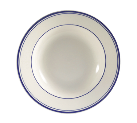 Blue Line Soup Plate, 10 oz., 9" dia. x 2"H, round, rolled edge, dishwasher, oven and microwave safe, stoneware (ceramic), Blue Band/American White (Sold by case)