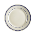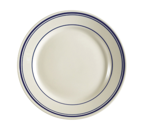 Blue Line Plate, 9-3/4" dia. x 1"H, round, rolled edge, dishwasher, oven and microwave safe, stoneware (ceramic), Blue Band/American White (Sold by case)