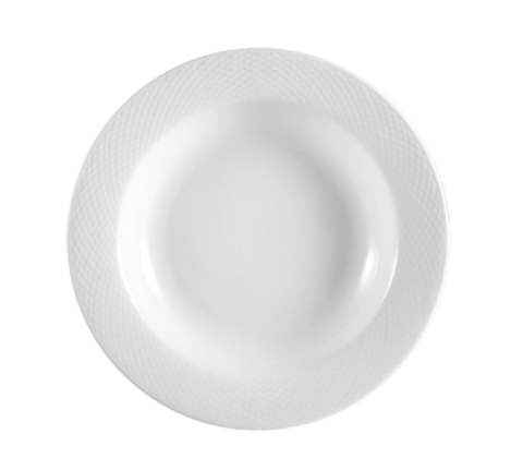 Boston Pasta Bowl, 16 oz., 10-1/2" dia. x 1-3/4"H, round, embossed, dishwasher, oven and microwave safe, porcelain, Super White (Sold by case)