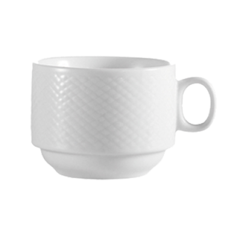 Boston Cup, 3-1/2 oz., 2-5/8" dia. x 2-1/4"H, round, stackable, embossed, dishwasher, oven and microwave safe, porcelain, Super White (Sold by case)
