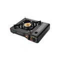 Butane Stove, single brass burner, built-in safety locking lever, heat-resistant knob, iron drip pan and grate, wind baffle, built-in over pressure protection and auto-off, includes heavy duty carrying case, compatible with 8-oz butane canister (sold separately), 9500 BTU, cCSAus, CSA-flame, CSA star (QTY break = 3 each)
