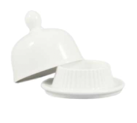 Gourmet Collection Butter Dish Set, includes: (1) 1 oz., 3-1/2" dia. x 3"H, round butter dish and (1) dome shaped lid, dishwasher, oven and microwave safe, porcelain, Super White (Sold by case)