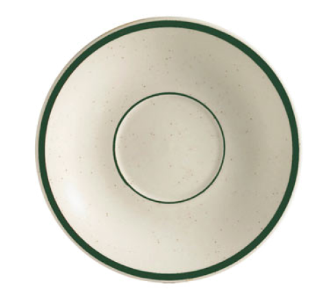 Emerald Saucer, 6" dia. x 1"H, round, dishwasher, oven and microwave safe, stoneware (ceramic), Emerald Rim/Emerald Speckled/American White (Sold by case)