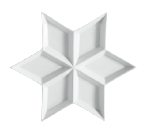 CMP Compartment Tray, 12" x 12" x 3/4"H, star shape, 6-compartments, dishwasher, oven and microwave safe, porcelain, Super White (Sold by case)