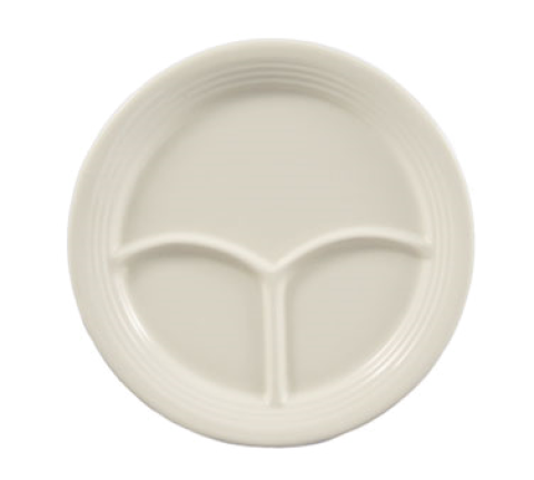 REC Divided Plate, 9-1/2" dia. x 3/4"H, round, 3-compartments, dishwasher, oven and microwave safe, stoneware (ceramic), American White (Sold by case)