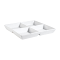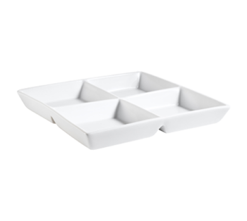CMP Compartment Tray, 14 oz. per compartment, 12"L x 12"W x 1-5/8"H, square, 4-compartments, dishwasher, oven and microwave safe, porcelain, Super White (Sold by case)
