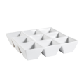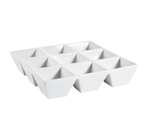 CMP Compartment Tray, 4 oz. per compartment, 9"L x 9"W x 2"H, square, 9-compartments, dishwasher, oven and microwave safe, porcelain, Super White (Sold by case)