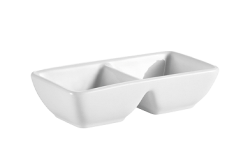 CN Divided Side Dish, 2 oz., per compartment, 5-1/2"L x 2-3/4"W x 1-3/8"H, rectangular, 2-compartments, dishwasher, oven and microwave safe, porcelain, Super White (Sold by case)