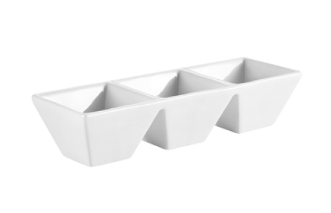 CN Divided Side Dish Plate, 4 oz. per compartment, 9-5/8"L x 3-5/8"W x 1-3/8"H, rectangular, 3-compartments, dishwasher, oven and microwave safe, porcelain, Super White (Sold by case)