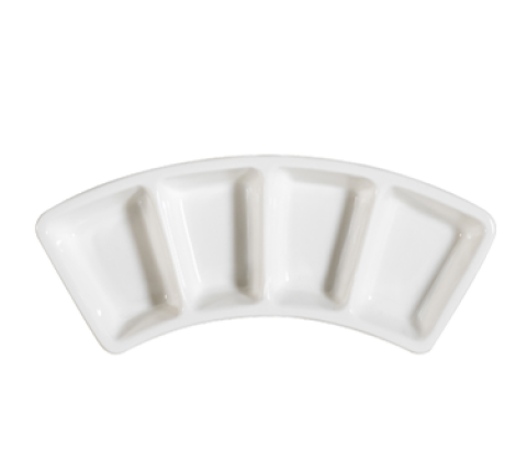 Accessories Dish, 8-1/2"L x 3"W x 1"H, arched rectangle, 4-compartments, dishwasher, oven and microwave safe, porcelain, Bone White (Sold by case)