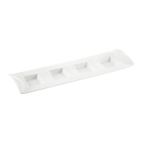 CN Compartment Tray, 1/2 oz. per compartment, 12-7/8"L x 3-7/8"W x 1-1/4"H, rectangular, 4-compartments, dishwasher, oven and microwave safe, porcelain, Super White (Sold by case)