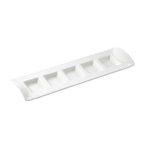 CN Compartment Tray, 1/2 oz. per compartment, 13"L x 3-7/8"W x 1-3/8"H, rectangular, 5-compartments, dishwasher, oven and microwave safe, porcelain, Super White (Sold by case)