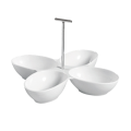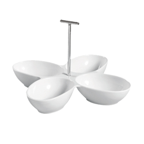 Accessories Divided Bowl, 8-1/2 oz. per compartment, 13-1/2"L x 13-1/2"W x 7-1/2"H, leaf shape bowls, 4-compartments, with metal handle, dishwasher, oven and microwave safe, porcelain, Super White (Sold by case)