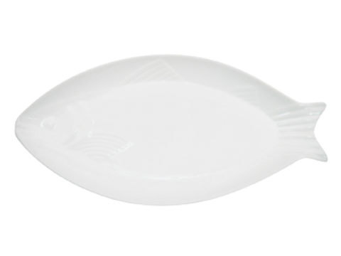 COL Fish Platter, 26 oz., 18"L x 8-1/2"W x 1-5/8"H, oval fish shape, dishwasher, oven and microwave safe, porcelain, Super White (Sold by case)