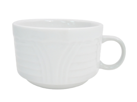 Corona Coffee Cup, 8 oz., 3-1/2" dia. x 2-1/2"H, round, stackable, embossed, dishwasher, oven and microwave safe, porcelain, Super White (Sold by case)