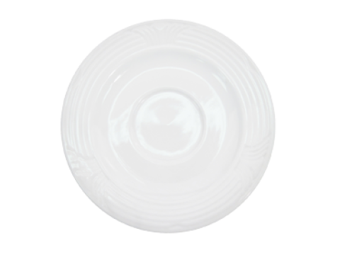 Corona Saucer, 6" dia. x 1/2"H, round, embossed, dishwasher, oven and microwave safe, porcelain, Super White (for CRO-1, CRO-1-S and CRO-17) (Sold by case)