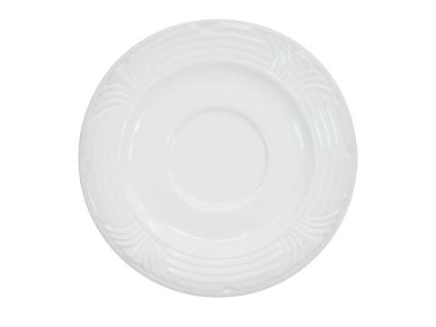 Corona Saucer, 4" dia. x 1/2"H, round, embossed, dishwasher, oven and microwave safe, porcelain, Super White (for CRO-35) (Sold by case)