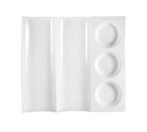 Citysquare Contemporary Tray, 12"L x 13"W x 1-1/2"H, square, 5-compartments, bamboo rim, dishwasher, oven and microwave safe, porcelain, Super White (Sold by case)