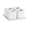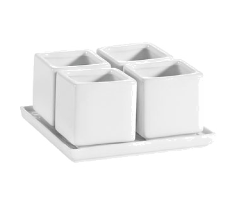 Gourmet Collection Tray and Bowl Set, includes: (4) 2 oz., 2" dia. x 2"H, square bowls and (1) 5"L x 5"W x 1/2"H, square tray, dishwasher, oven and microwave safe, porcelain, Super White (Sold by case)