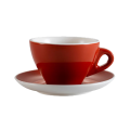 Cup and Saucer Set, two-piece, includes: (1) 7-1/2 oz., 3-5/8" dia. x 2-5/8"H, round cup and (1) 5-7/8" dia. x 1"H, round saucer, dishwasher, oven and microwave safe, porcelain, Red/Super White (Sold by case)