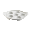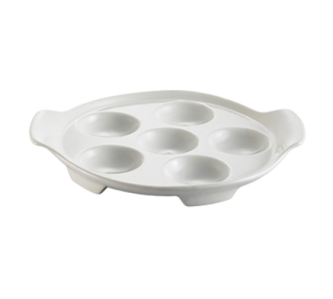 Escargot Dish, 8-1/2"L x 7-1/4"W x 1-1/4"H, round, with 2 handles, dishwasher, oven and microwave safe, porcelain, Super White (Sold by case)